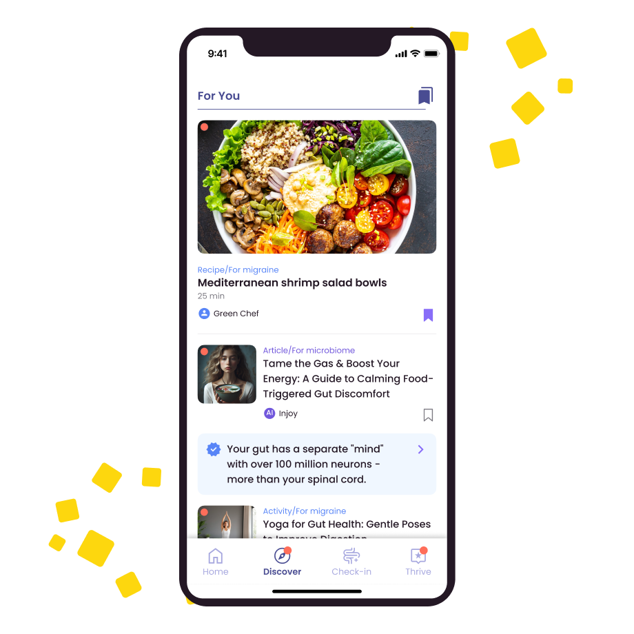 Activate your kit in the Injoy app and dive into logging your diet, symptoms, daily habits, and more.